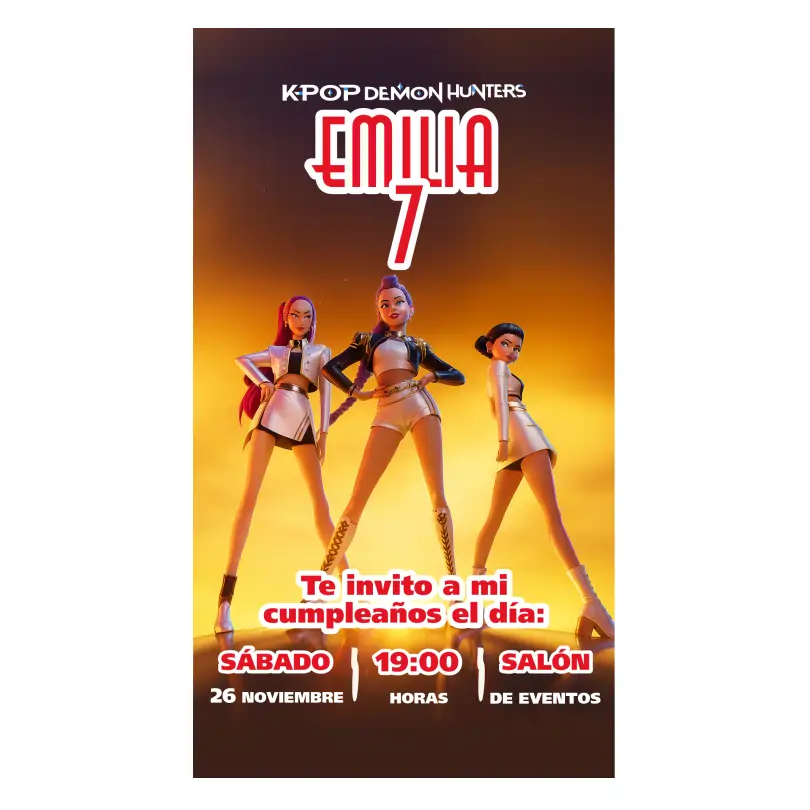 ¡Ahorra -35%! Este Invitación Digital Personalizada para WhatsApp - Diseño K-POP Demon Hunters 3 puede ser tuyo solo por $8.499,99. Si tienes alguna duda, pregúntanos.