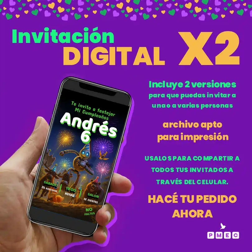 ¡Ahorra -35%! Este Invitación Digital Personalizada para WhatsApp - Diseño Robot Salvaje puede ser tuyo solo por ARS $ 8.499,99. Si tienes alguna duda, pregúntanos.